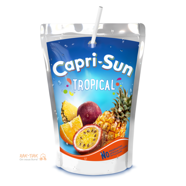 La poche de Capri-Sun Tropical | Poche de 20 cl | Le plaisir fruité à emporter partout ! Capri Sun Tropical offre un mélange rafraîchissant de fruits pour une boisson désaltérante et gourmande.