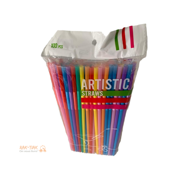 100 Pailles colorées en plastique