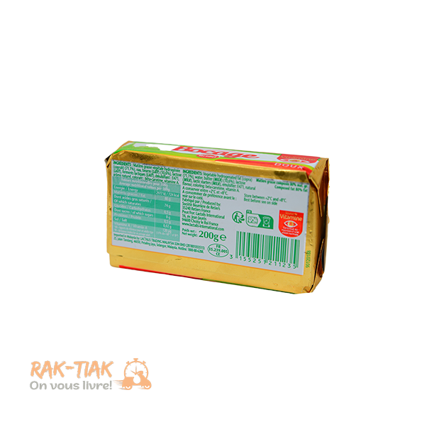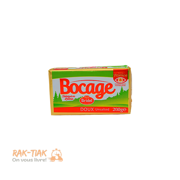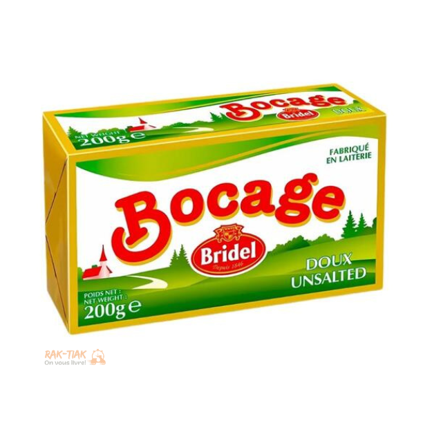 Bocage par Bridel | Plaquette de 200g | Le beurre Bocage de Bridel, au goût incomparable, te garantit une texture parfaite à chaque utilisation. Sa stabilité à haute température est idéale pour toutes tes recettes chaudes.