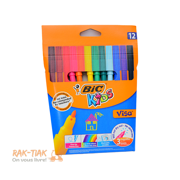 Feutres Bic Kids | Etui de 12 feutres | Feutres Bic Kids, conçus pour le coloriage et l’école, alliant vivacité des couleurs et sécurité pour les petites mains.