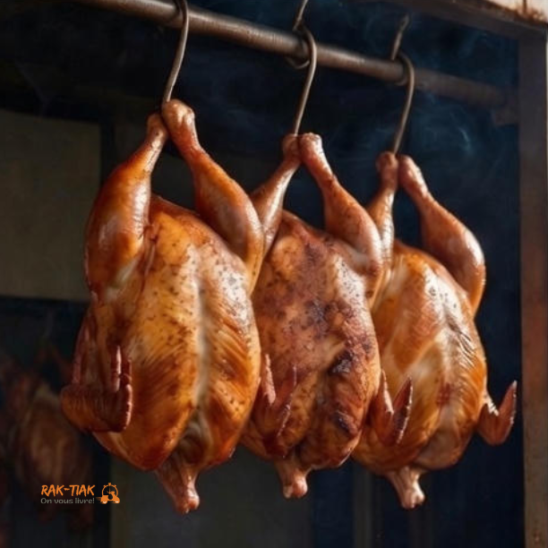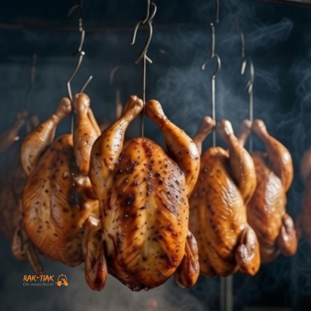 Savourez notre poulet entier fumé épicé, préparé selon le savoir-faire malien du fumage traditionnel, par des experts reconnus pour l’équilibre parfait entre fumée, épices et tendreté.