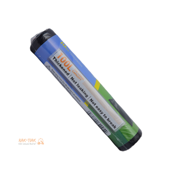 Sacs poubelle classiques 100L|Rouleau de 10 sacs poubelles avec liens|Grand format pour une utilisation familiale! Ces sacs sont résistants et conçus pour contenir une grande quantité de déchets, avec des liens pour un fermeture facile.