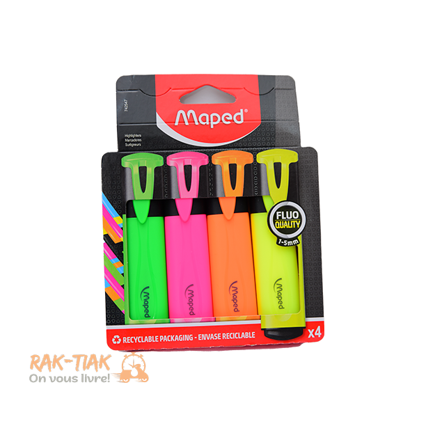 Surligneurs Maped | Paquet de 4 surligneurs | Surligneurs Maped pour mettre en valeur l’essentiel avec des encres ultra brillantes et une utilisation facile au quotidien.